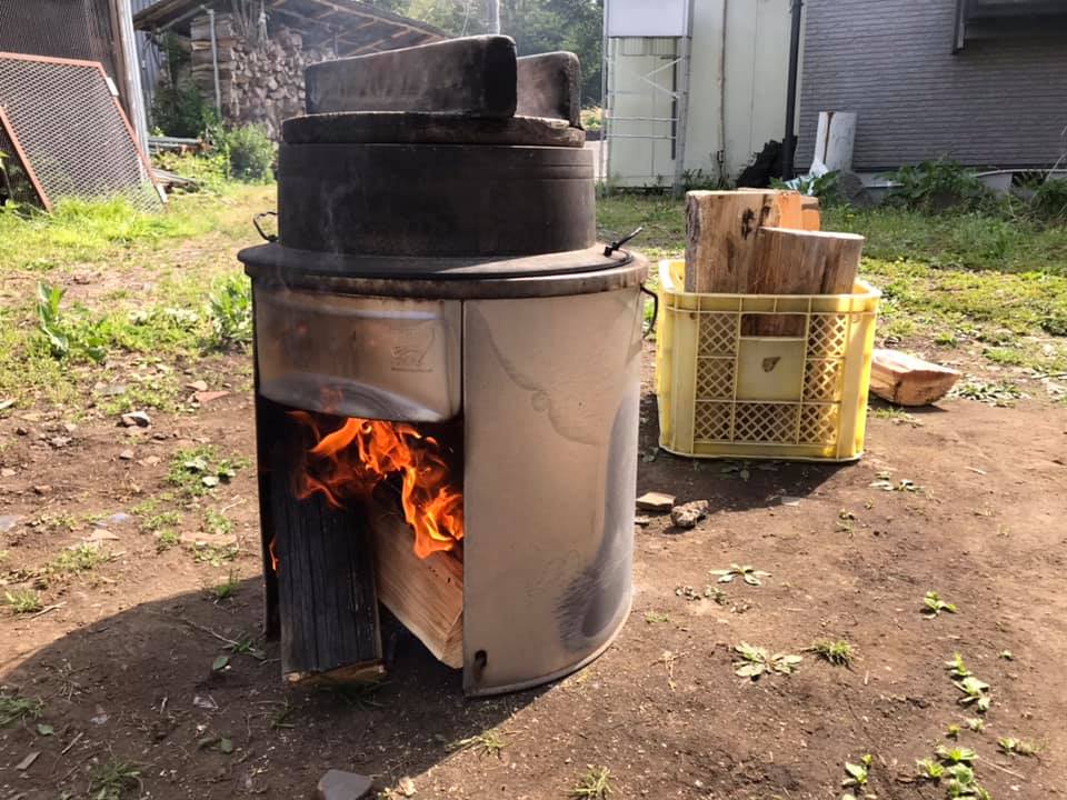 例のごとく、酒米は薪の羽釜で炊きます。プリミティブ。さすが百姓ブルワリーです。
