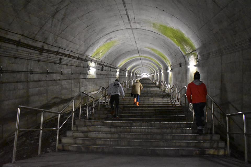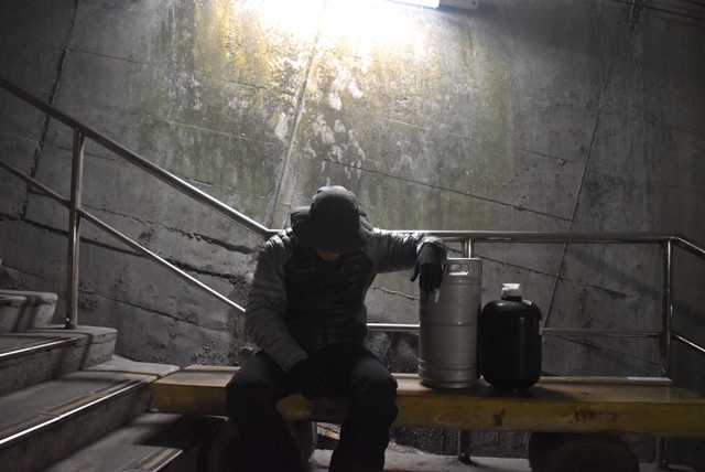 搬入は下り線の電車に乗って地下からビール樽をサクッと運び入れる予定でしたが、なんと歴史的な大雪で電車がストップ。急遽地上から462段を樽を担いで降りる事に。