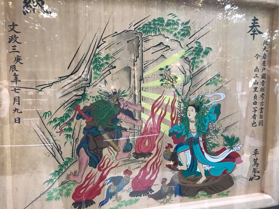 実家のほうの神社では、天岩戸の絵図も発見しました。これもかっこいい。